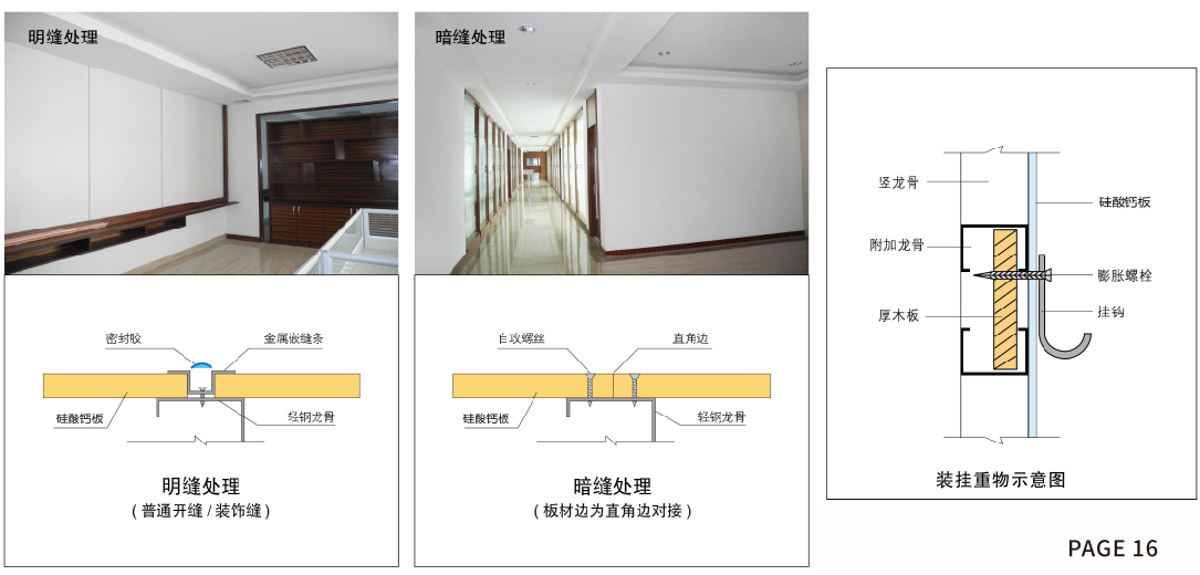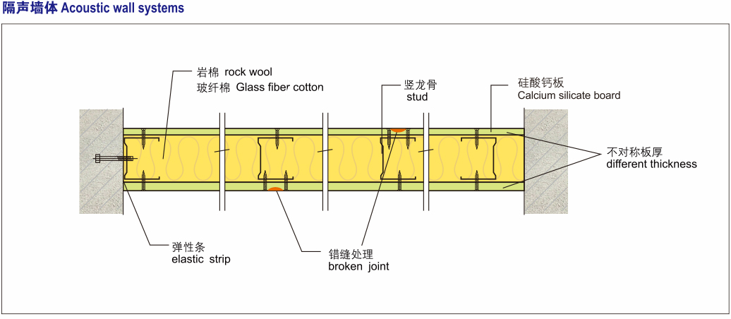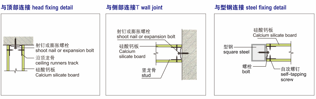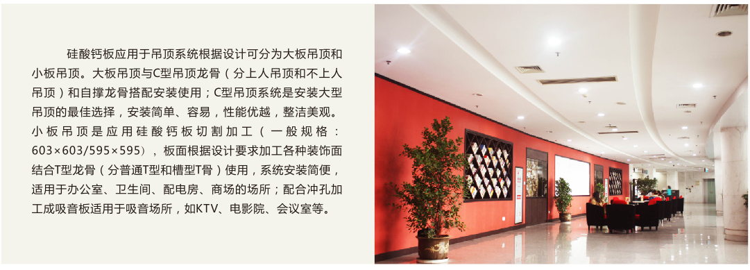 硅酸钙板采用多种硅质和钙质材料混合,经高温高压反应合成均衡紧密的石晶体结构,其优越的性能、环保产品非常适合现代化建筑装饰场所使用。应用于隔墙系统主要涉及到:力学特性、防火性能、隔热保温性能、空气隔声性能、占地面积。墙体载重等方面因素,硅酸钙板与轻钢龙骨组成的隔墙系统可以满足以上要求,为设计师提供优质的创意设计空间。